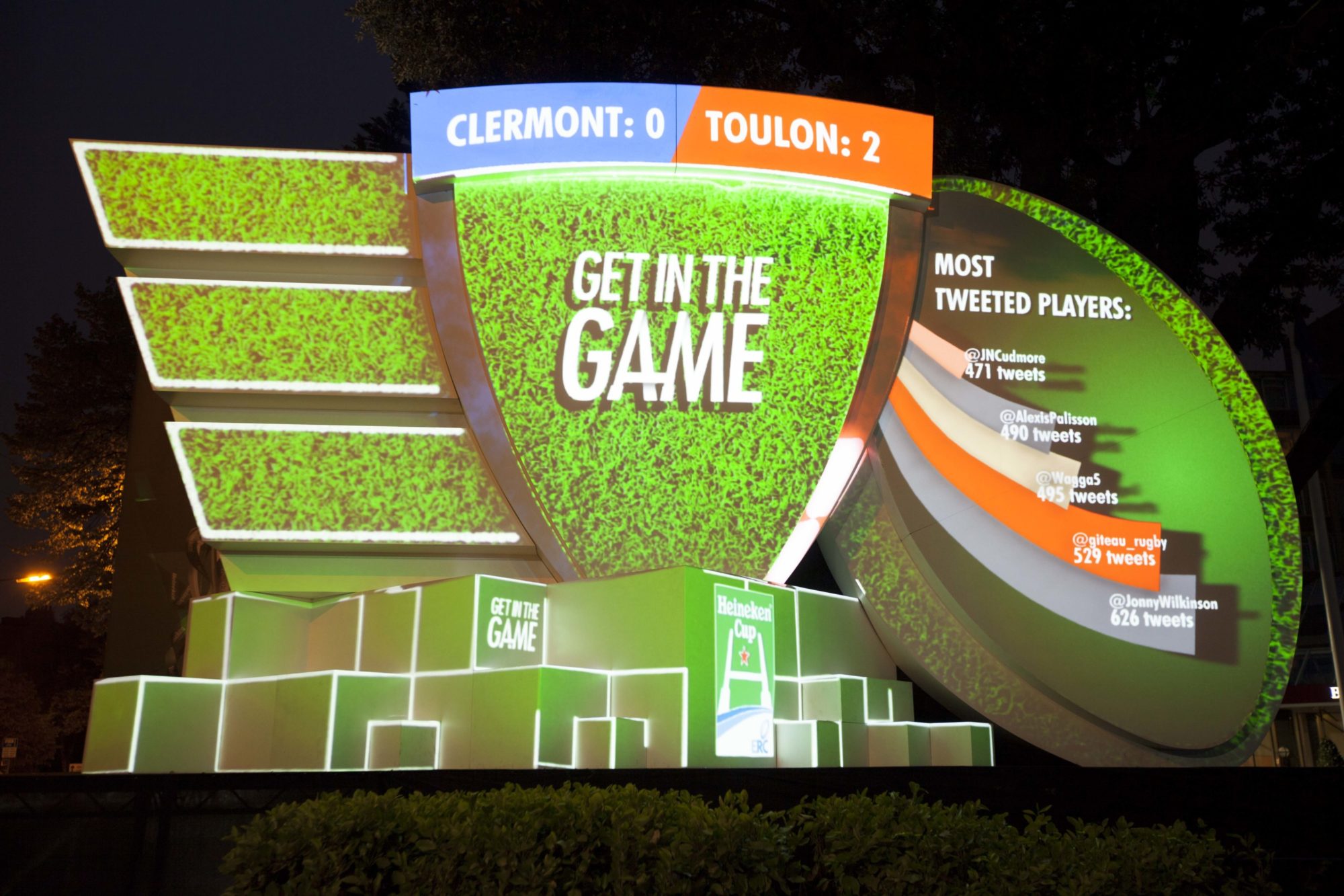 More than 800 guests donned headphones and gathered in the courtyard to experience the worlds first “silent disco” video-mapping show. The creative was mostly monochromatic to reflect the “Paint the Town Black” campaign, and featured dramatic effects and 3D fly-throughs inspired by Ireland’s most famous export. The heavy fluid simulations and black-and-white colour palette were a challenge, but our creative team achieved incredibly realistic effects using specialist fluid-dynamics software.